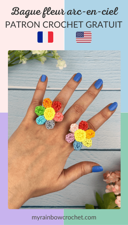 C’est enfin le printemps et pour l’occasion, j’ai été inspirée pour continuer ma collection de bagues au crochet ! Cette fois-ci, je vous partage une bague qui te donnera un shot de couleurs avec la Bague fleur arc-en-ciel 🌸 Si tu veux crocheter d’autres bagues, elles sont toutes disponibles gratuitement sur mon site aussi 😊