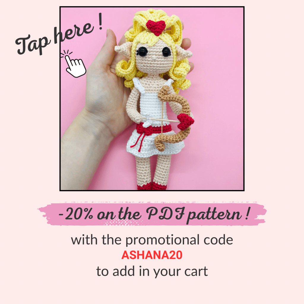I share this crochet pattern of Ashana, the Cupid elf, for free below and also in PDF format on my shop if you want to keep it with you!