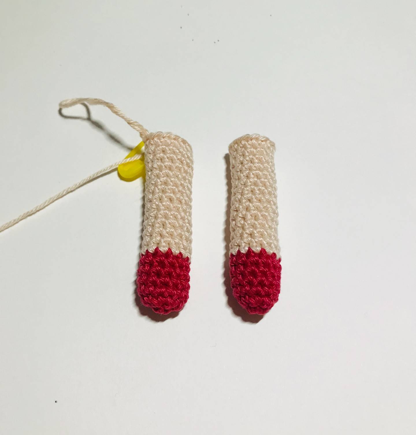 -> Fasten off for one of the parts and weave in ends.