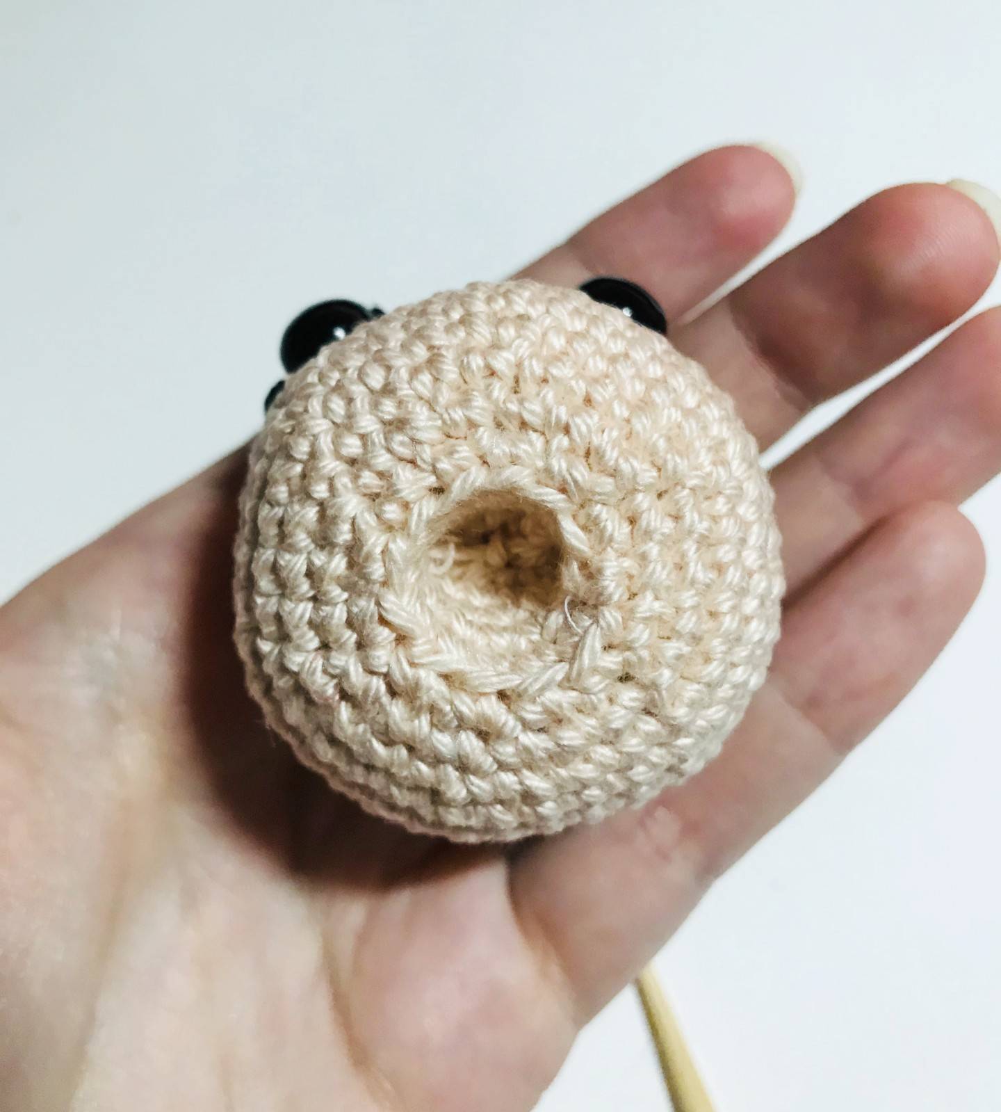 -> Using a pin, mark the location of the ears 4 sc from the top lash, to the right and left of the head.
