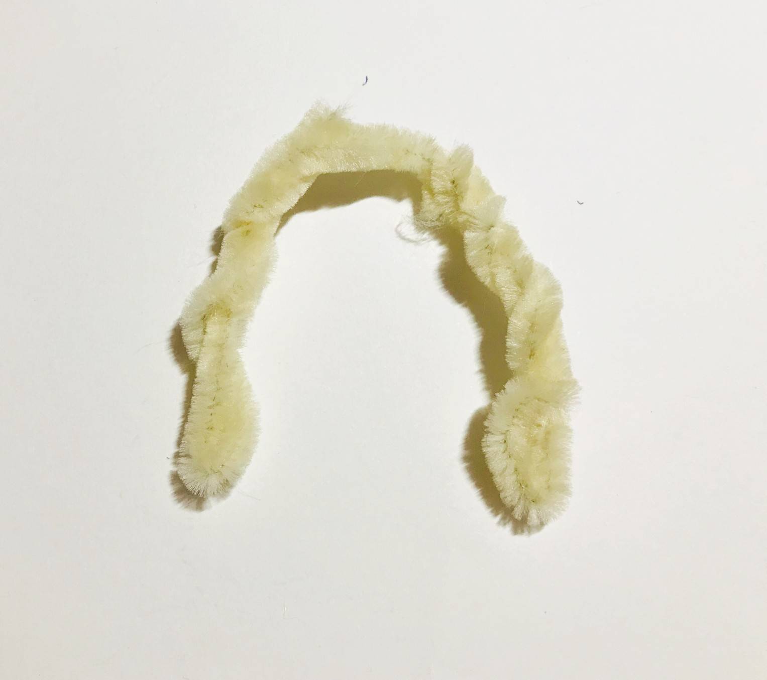 -> Then glue the other strands, strand by strand, starting with the left side of the face and those of the outer row. Glue them on about 5 cm in length. Then fill in the spaces with the strands from the