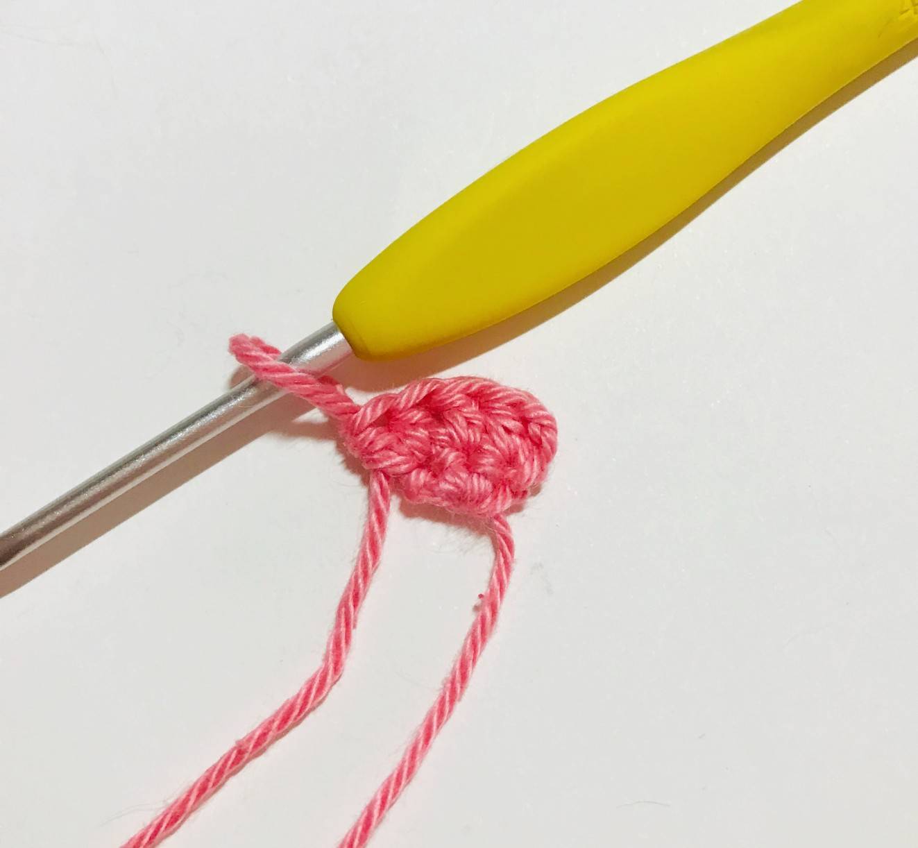 R2: from the 2nd stitch, 1 sc then 9 sc