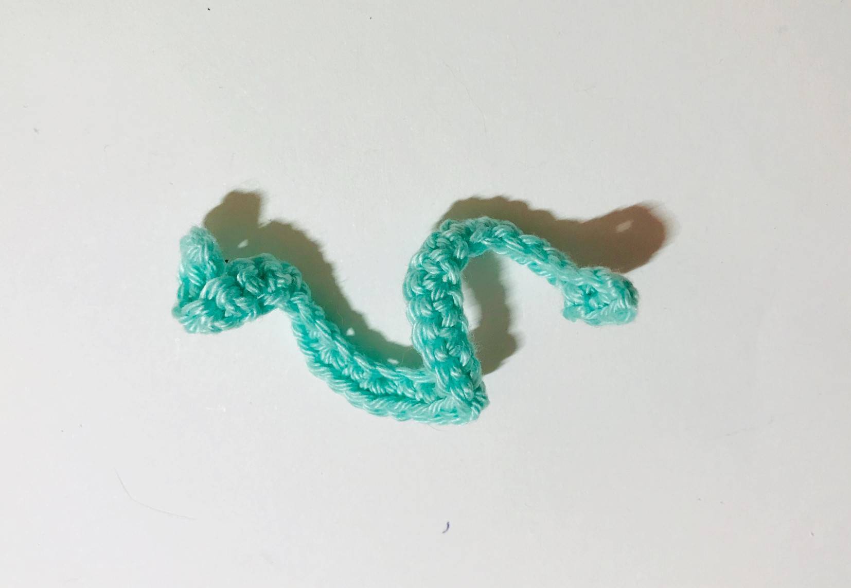 Strand 2: CH 32. from the 2nd stitch, 1 SlSt then 11 sc and 19 SlSt. Finish with 1 SlSt on the base by