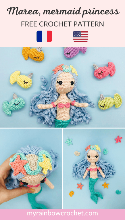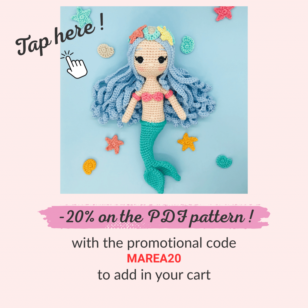 The crochet pattern of Marea, the mermaid princess, is available for free below and in PDF format in my shop!