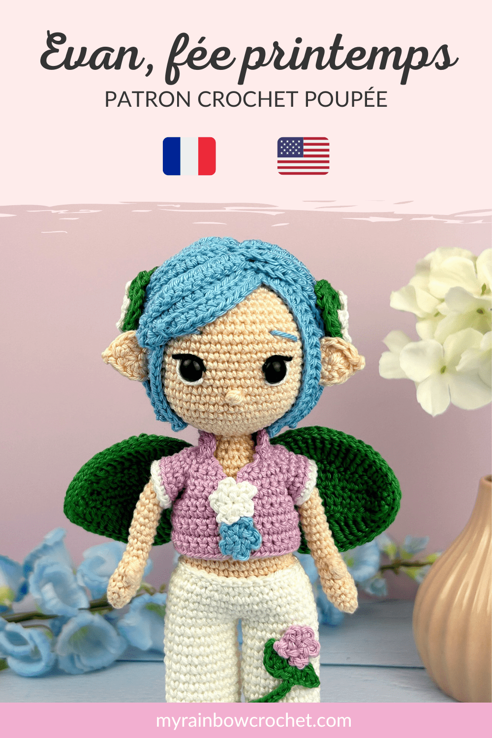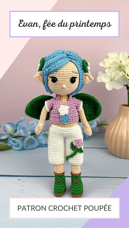 Le patron d’Evan, la fée du printemps, est tout à fait adapté aux crocheteuses qui ont l’habitude de réaliser des poupées.