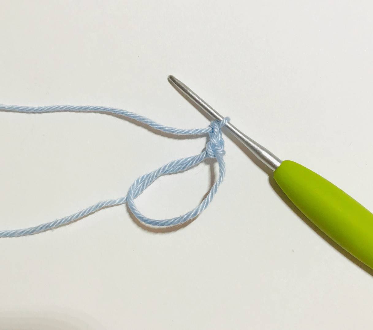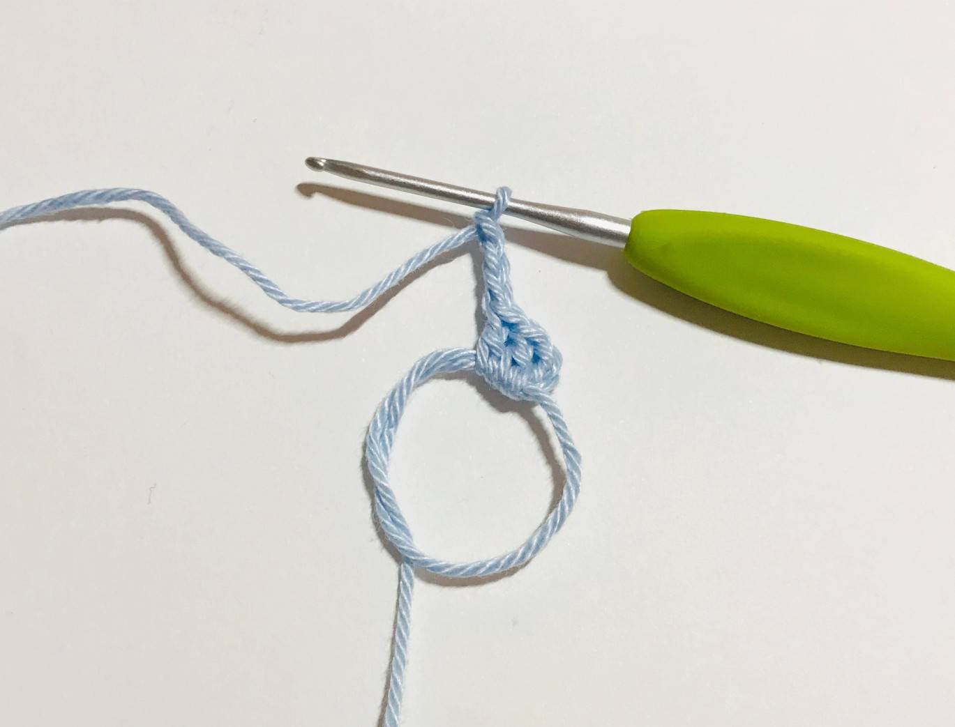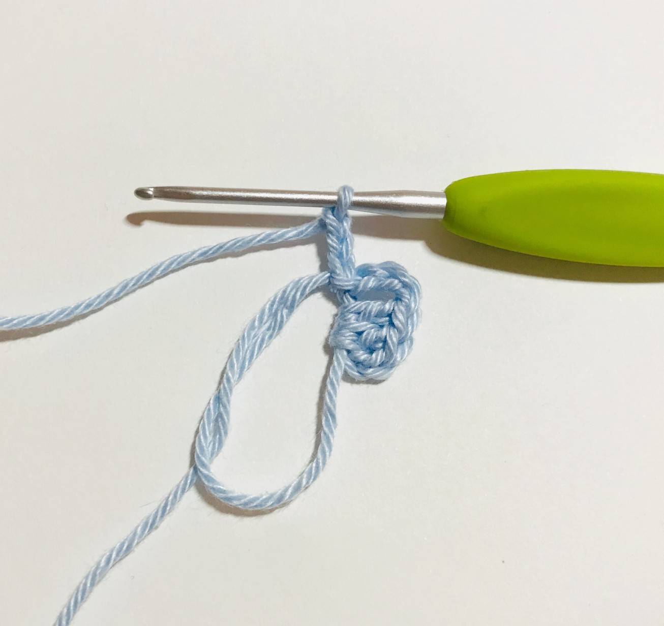 (à réaliser avec le fil de coton bleu clair et le crochet 2 mm)