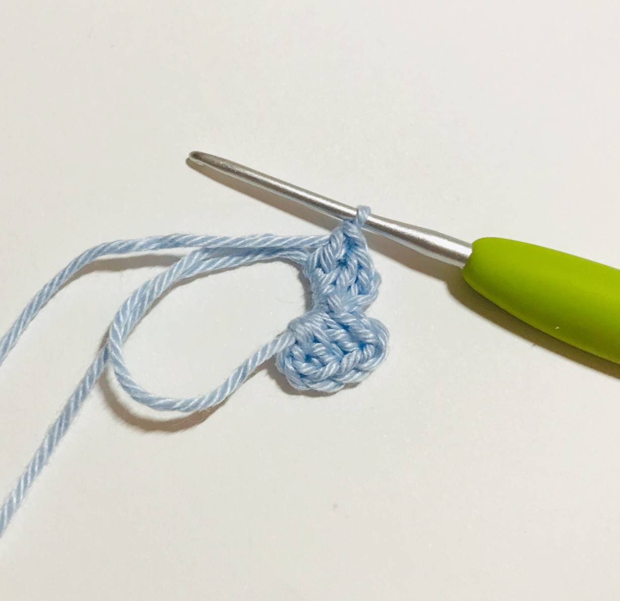 R19: Réaliser 4 ml à partir de la jambe où vous avez garder le fil et joindre les deux jambes en faisant 1 ms avec la deuxième jambe. Vérifiez bien que les deux jambes sont parallèles au niveau de la forme
