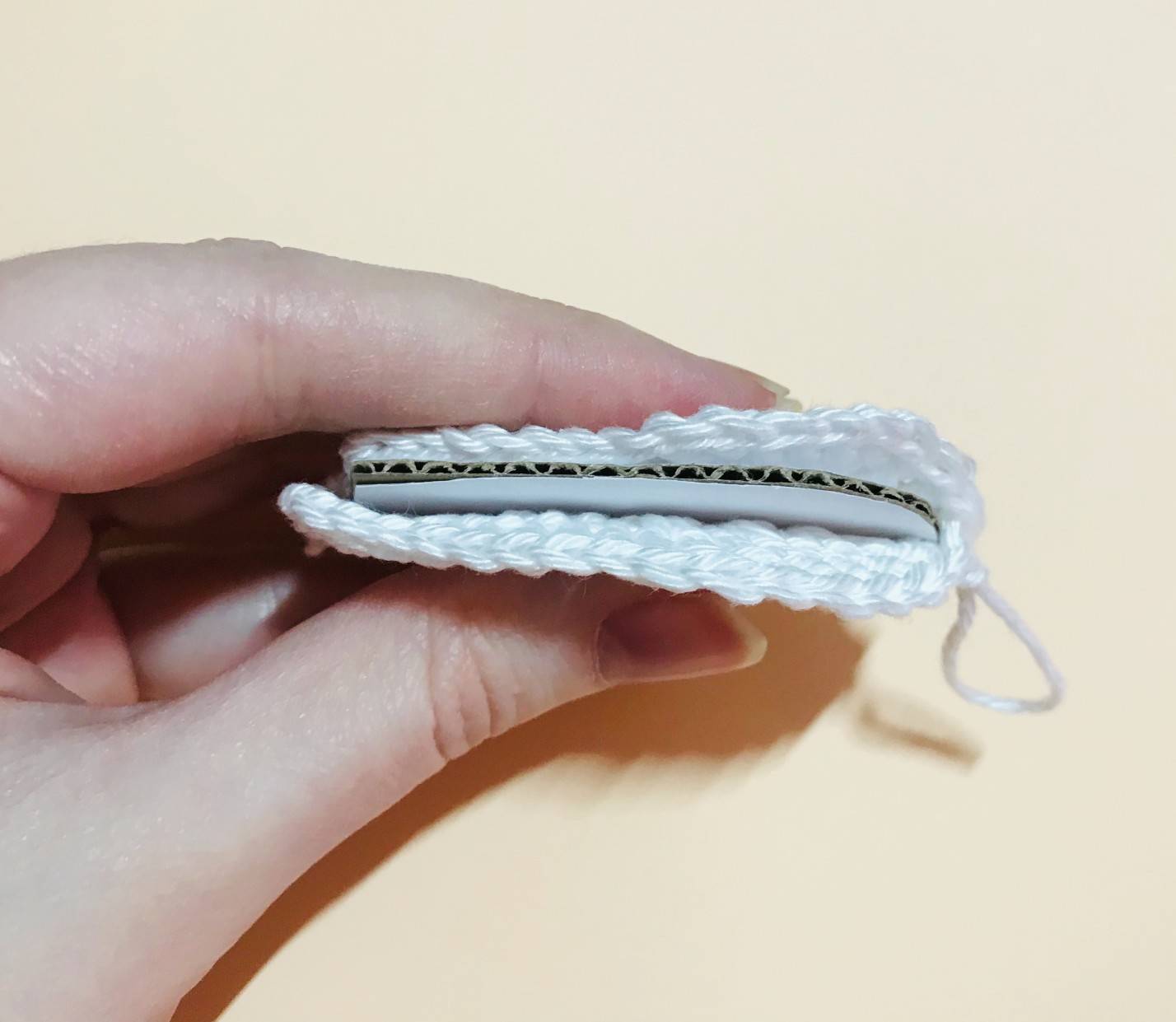 Garder assez de fil aux 2 extrémités pour coudre l’anse à la base.