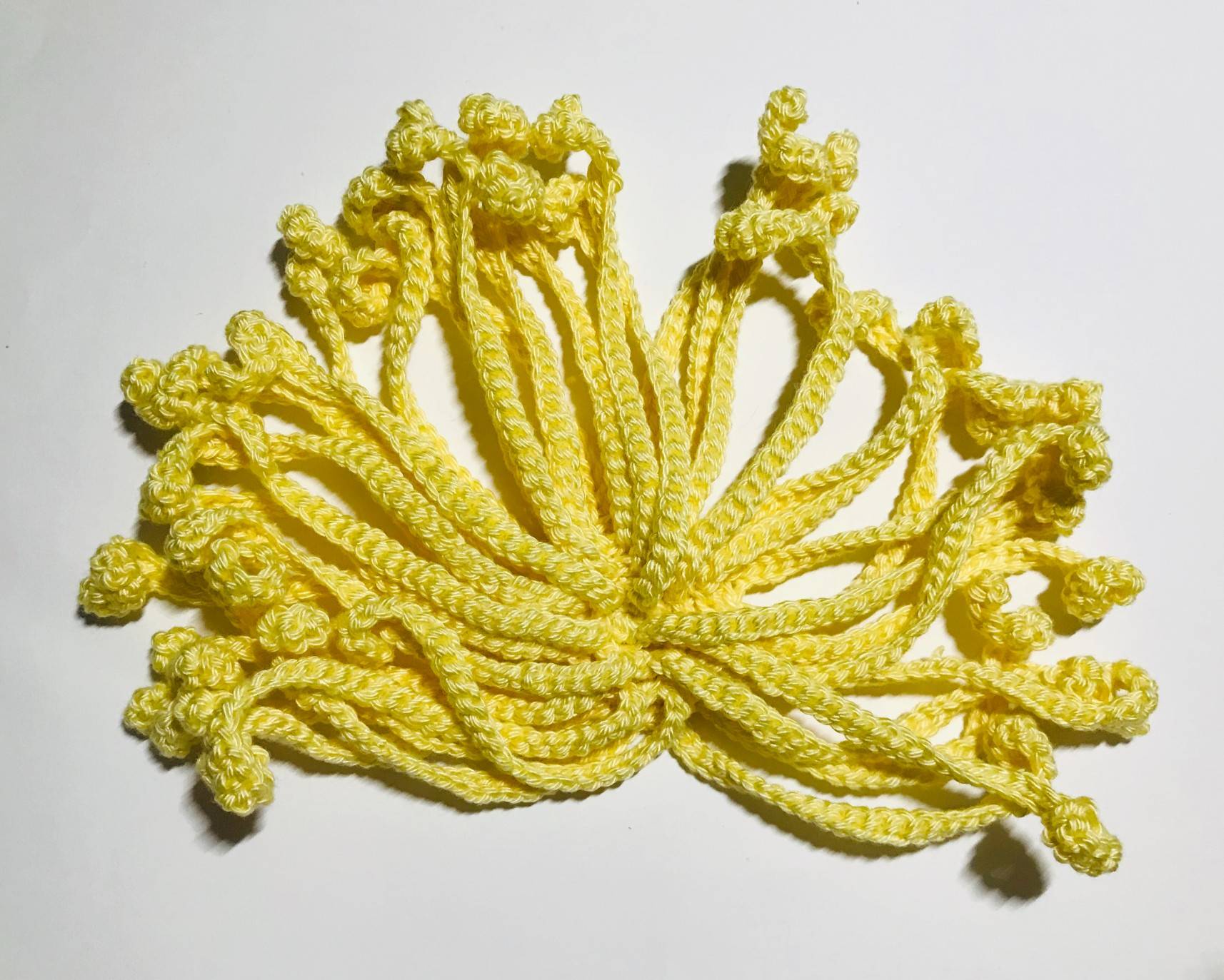 - Fils de coton (fingering) : Blanc, noir, beige, jaune, marron, bleu, bleu clair