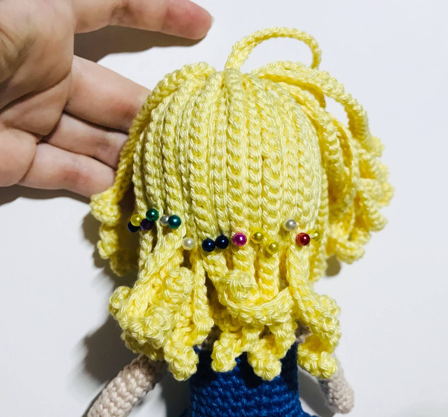 Vous pouvez vendre les produits finis, s’ils sont faits par vos soins, en quantité limitée et en renseignant le nom de la créatrice. Merci d’ajouter les informations suivantes à la description de l’amigurumi vendu: