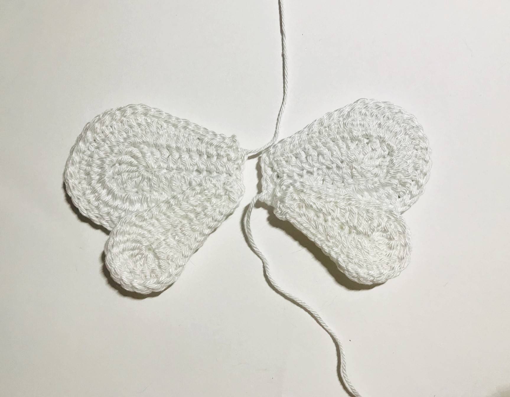 Garder le fil pour la 2ème aile pour les assembler ensuite.
