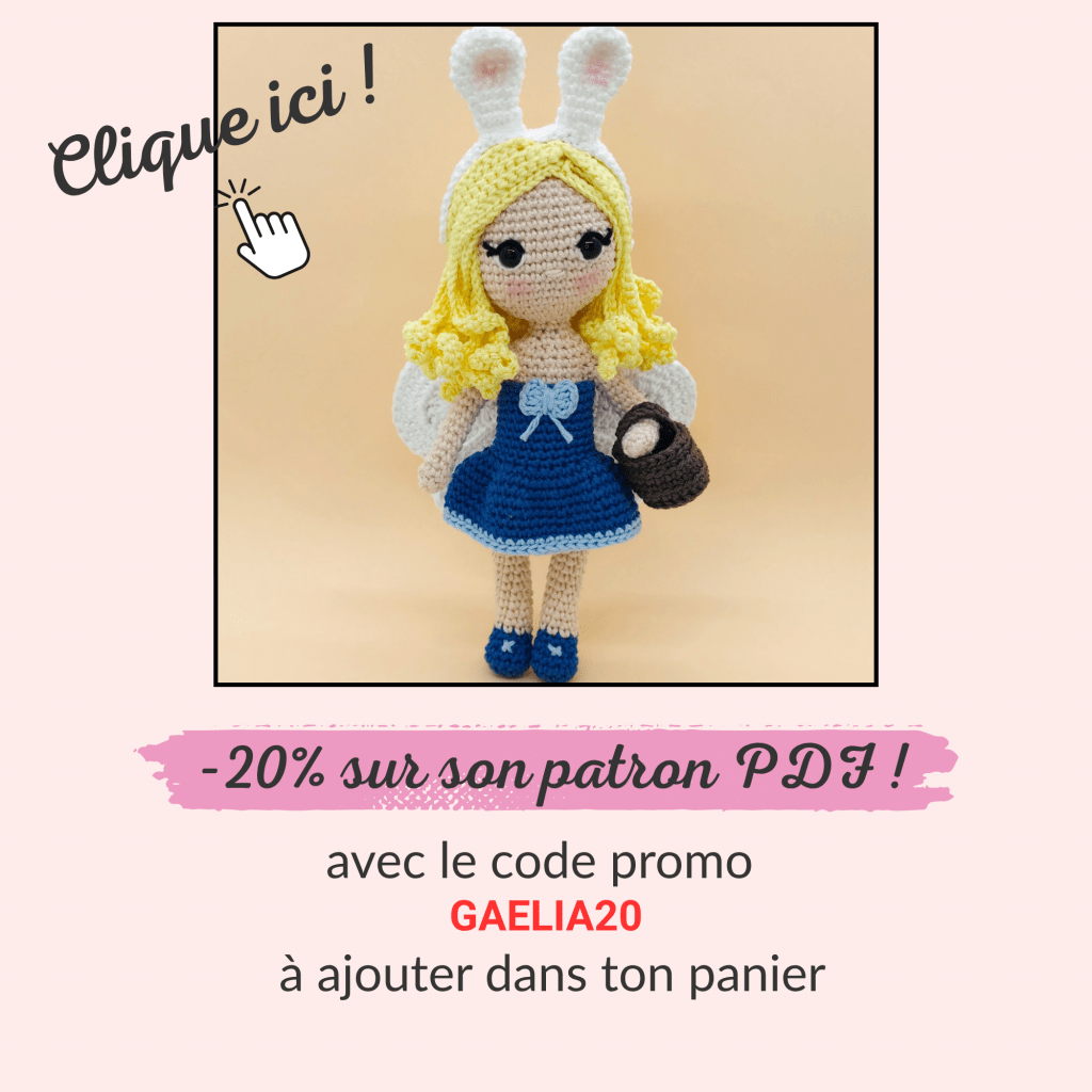 Je te partage dès maintenant ce patron crochet de la poupée Gaelia, la fée de Pâques, gratuitement ci-dessous et aussi en format PDF sur ma boutique si tu veux le garder avec toi !