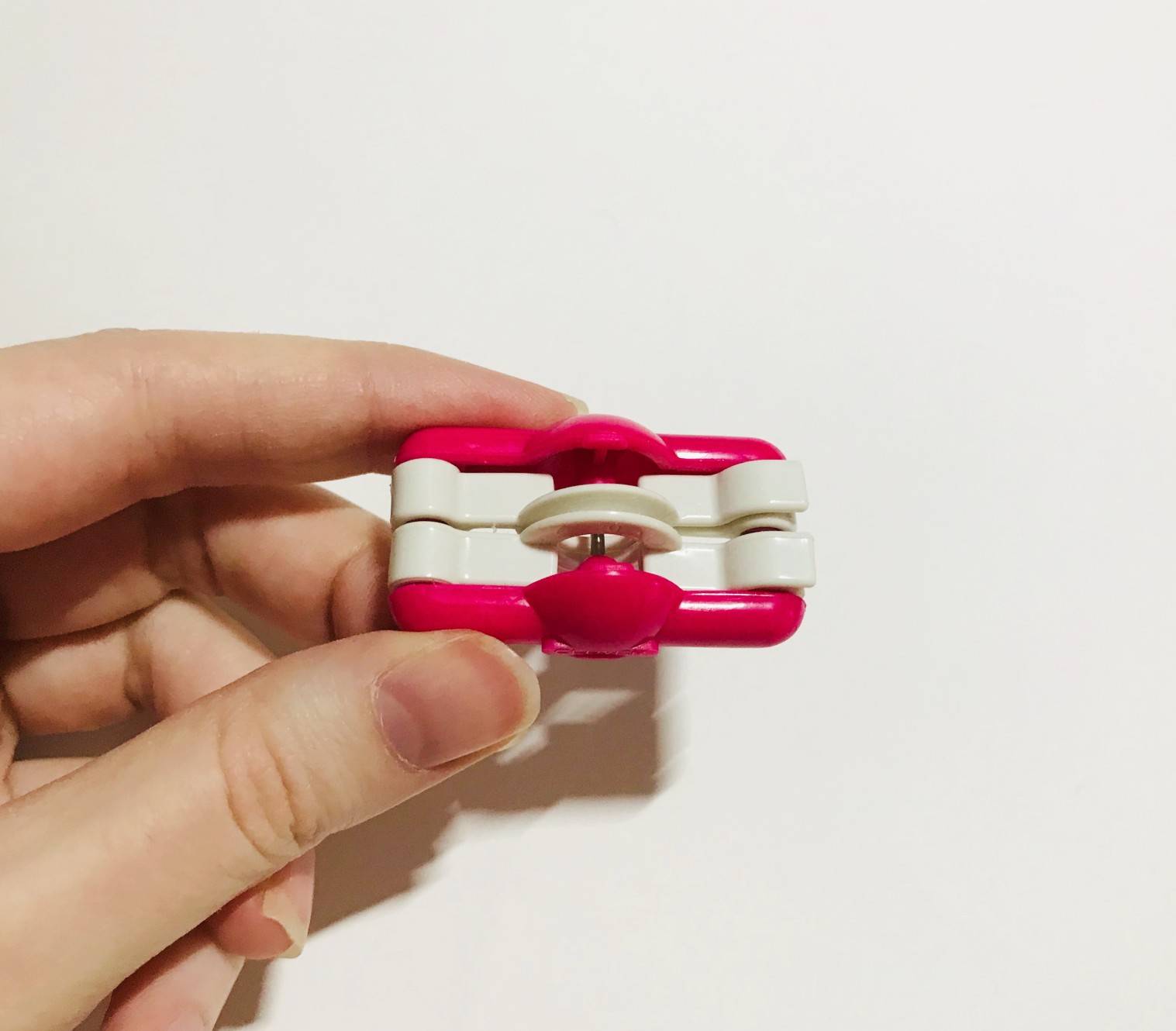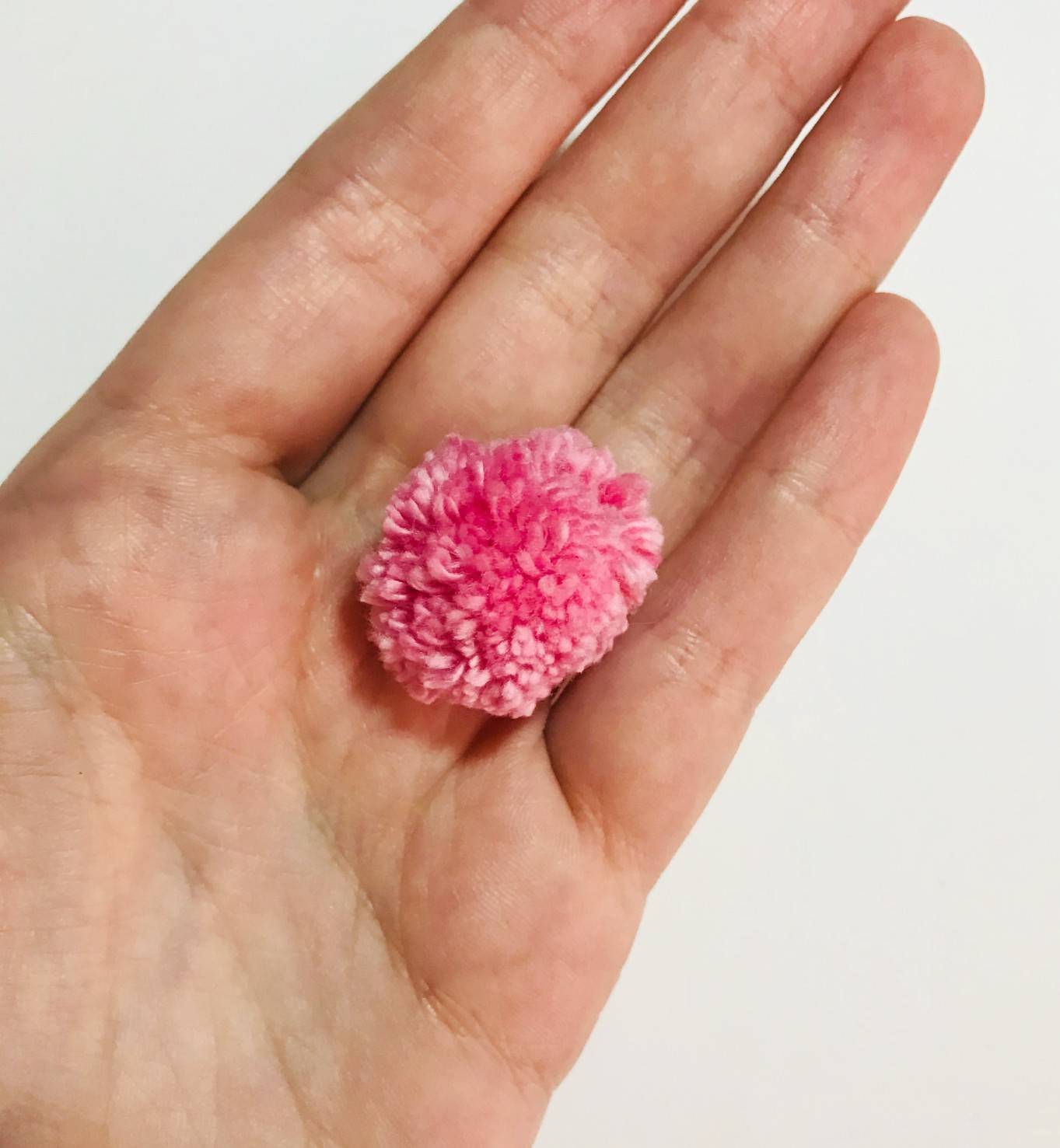 -> Utiliser votre set à fabriquer des pompons avec votre fil rose. J’ai ici utilisé un set de taille 20 mm.