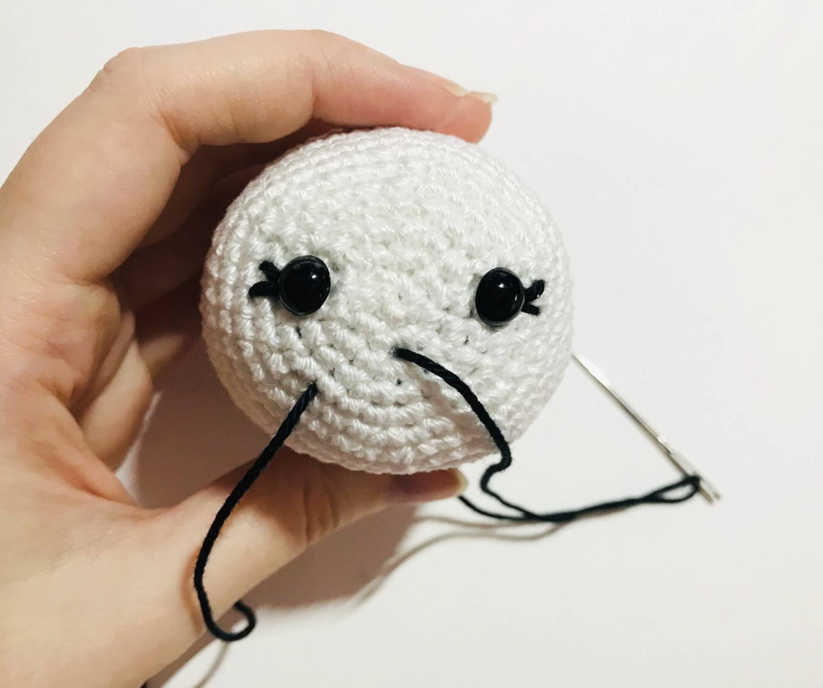 Poser les yeux de sécurité à 4 mailles du centre pour chaque oeil et au même niveau que le centre