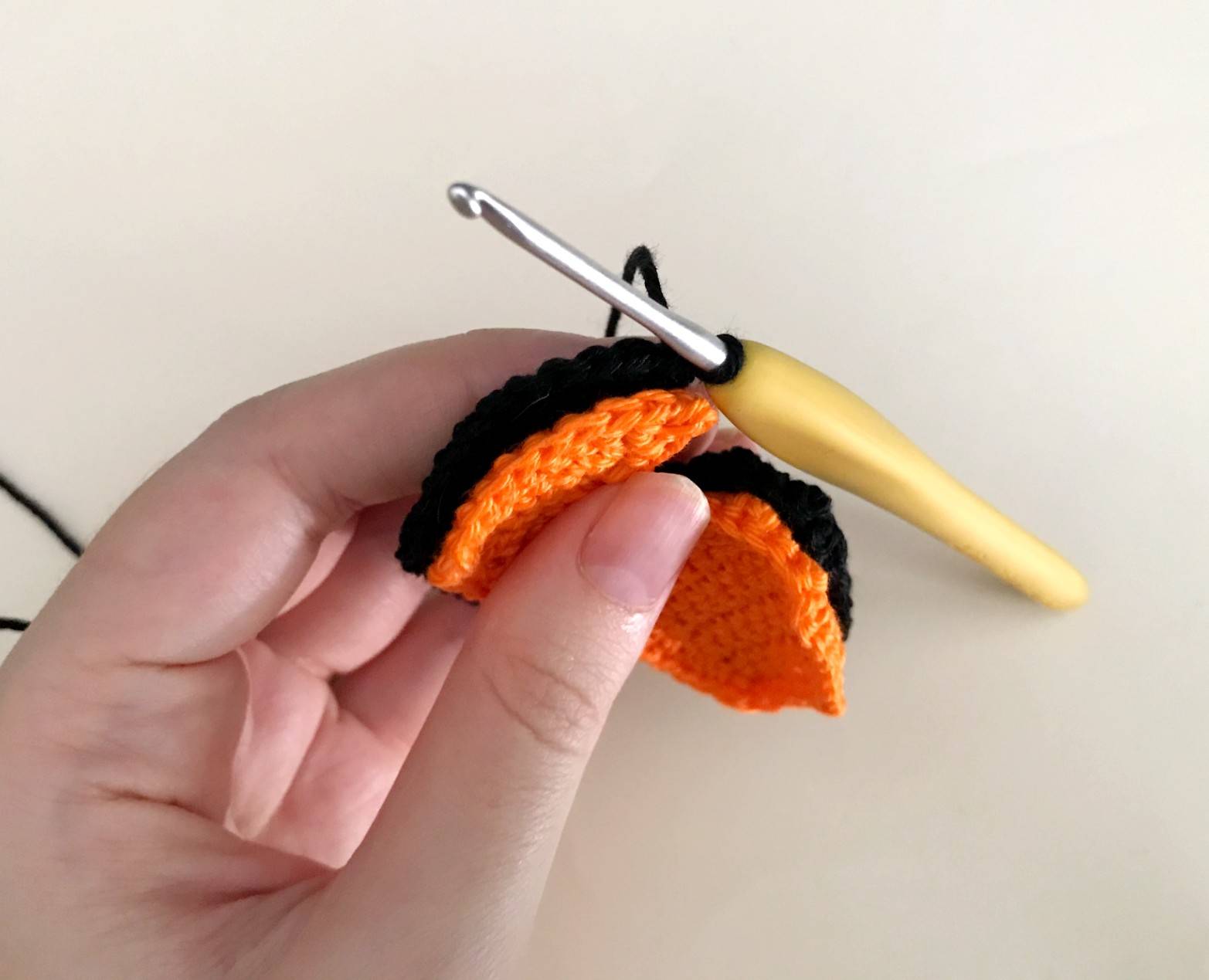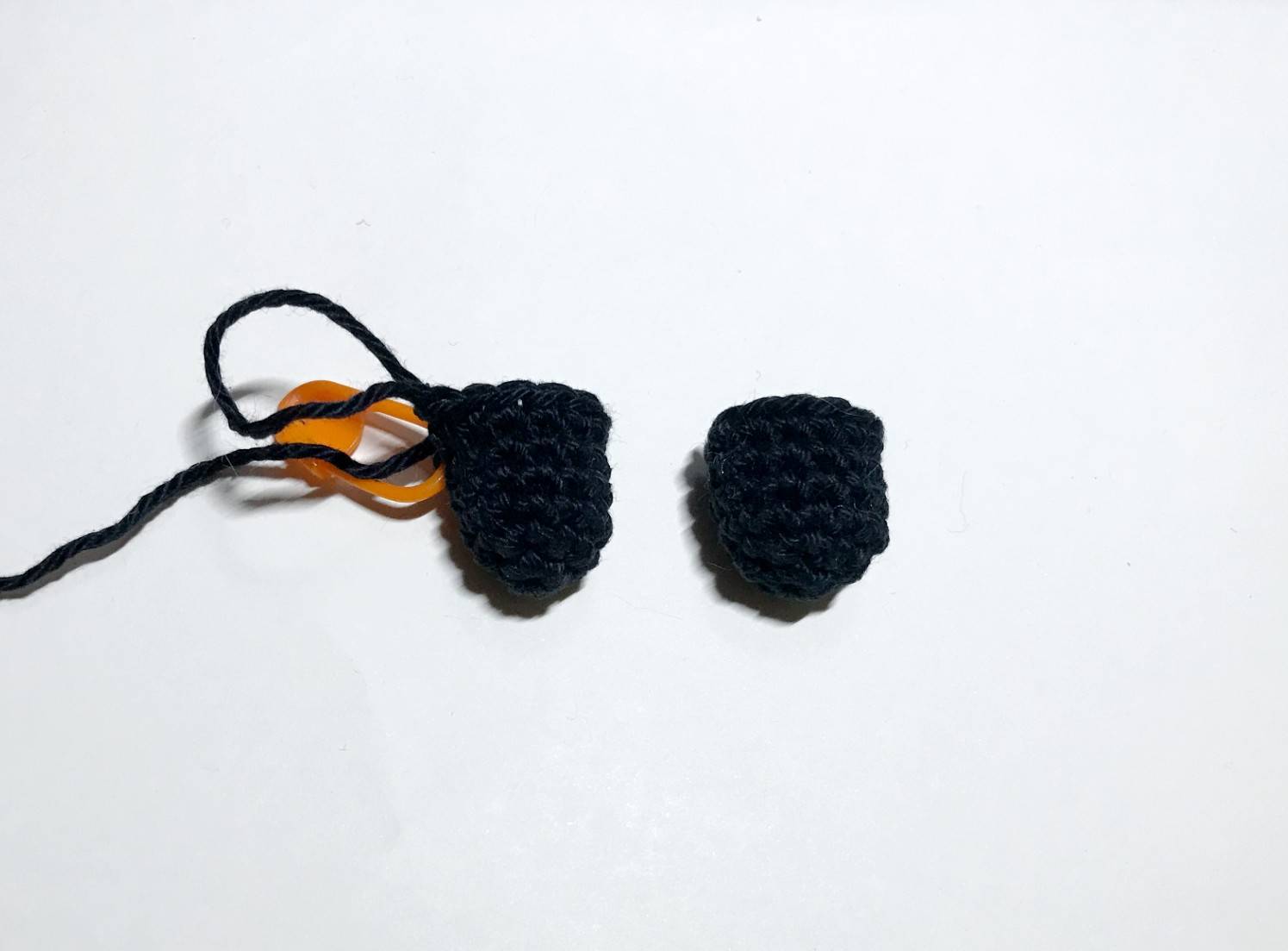 Ne pas couper le fil ! Le laisser de côté le temps de réaliser la partie orange.