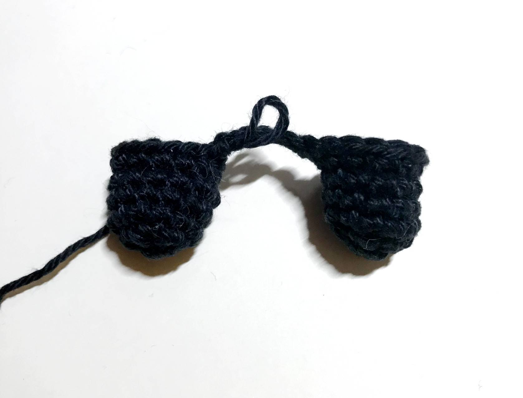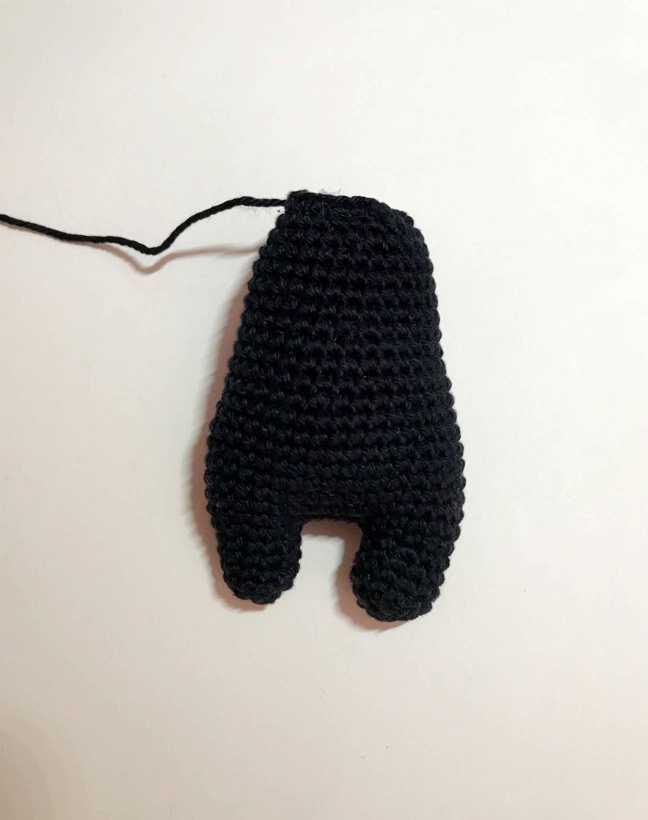 Pour l’une des jambes, couper le fil et le rentrer.