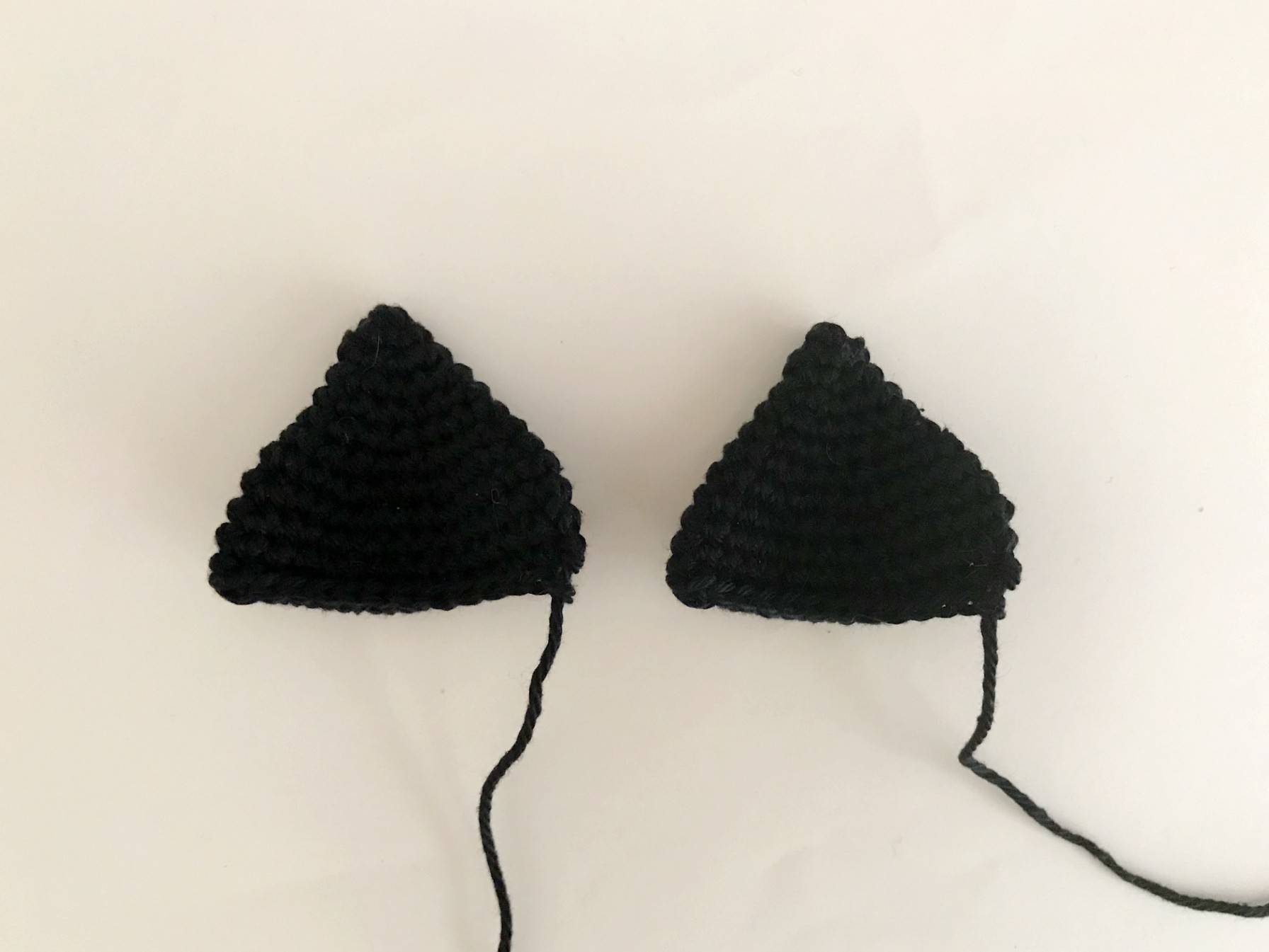 Coudre les oreilles à partir des épingles (donc à 5 ms du sommet) en laissant une forme de courbe lors de la couture. Il doit y avoir 8 ms d’écart