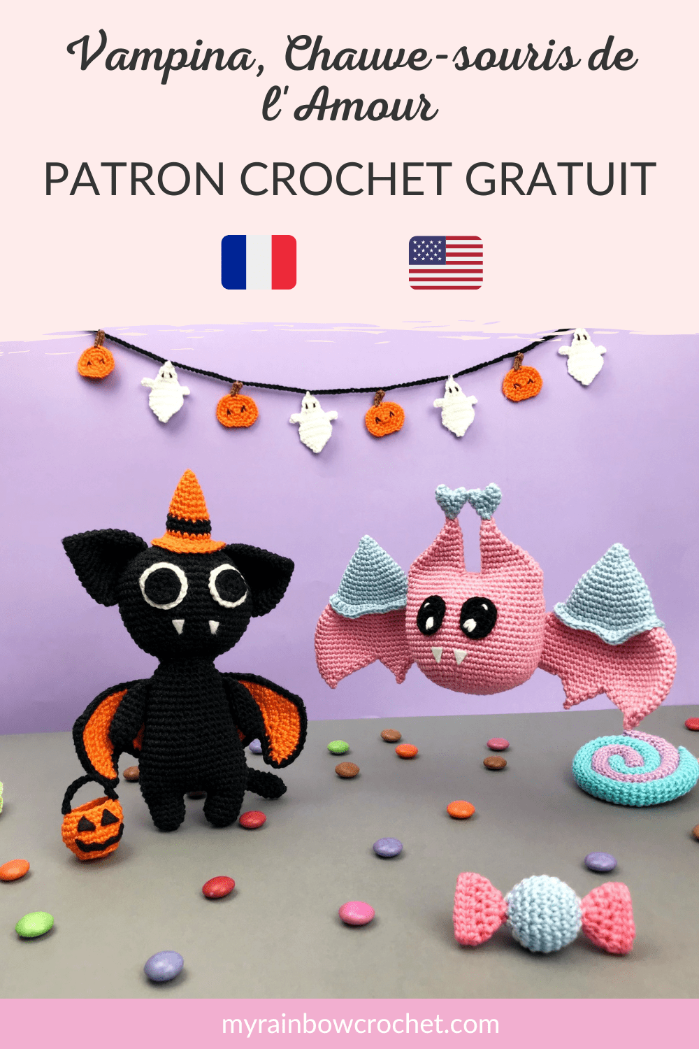 Pour rester dans le thème d’Halloween et pour ajouter des éléments crochetés à ta décoration, tu peux aussi retrouver les bonbons pour Halloween sur mon site qui sont disponibles gratuitement en cliquant sur l’image ci-dessous ! 🔽
