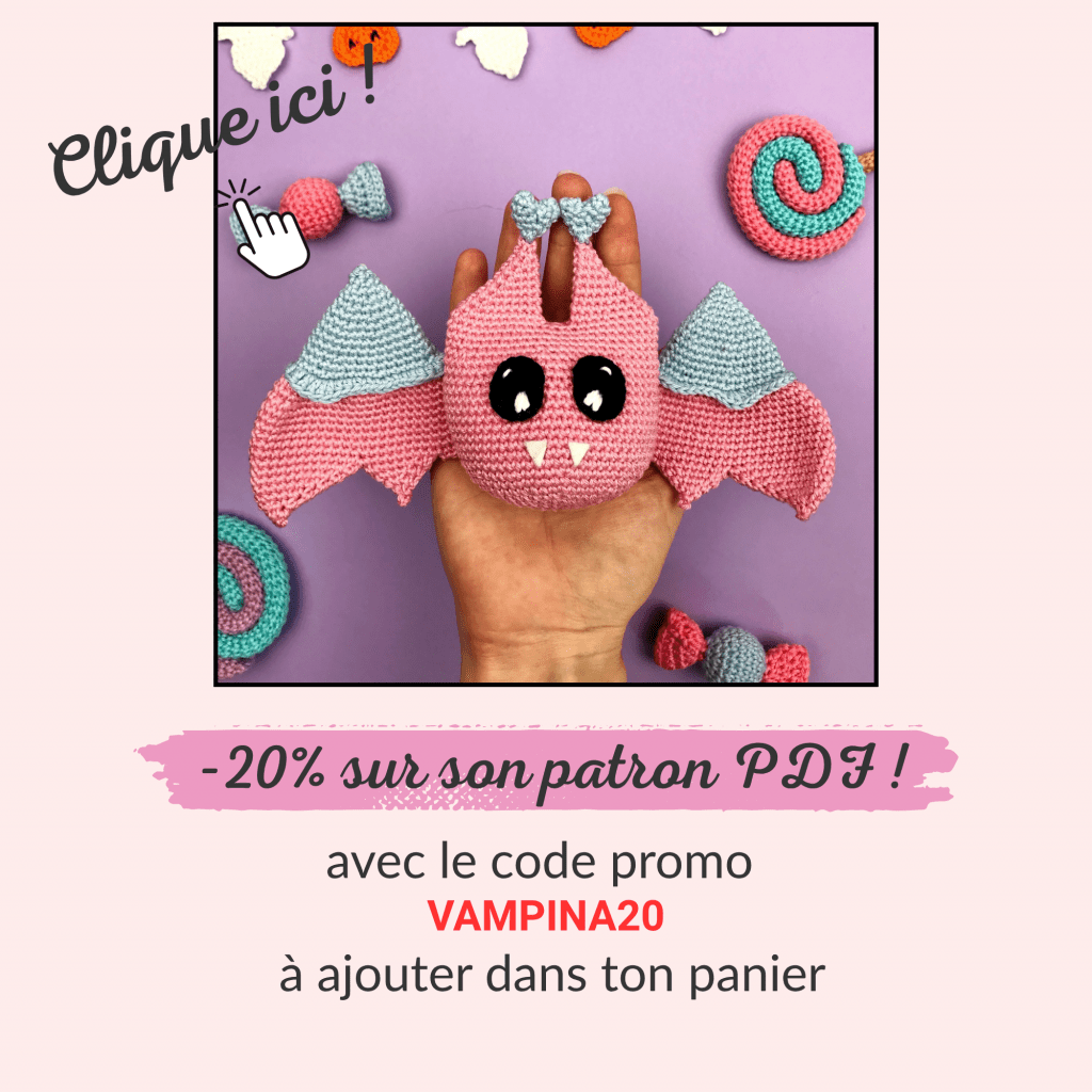 Tu peux retrouver le patron de Vampina, la chauve-souris de l’Amour, gratuitement ci-dessous ou au format PDF dans ma boutique !